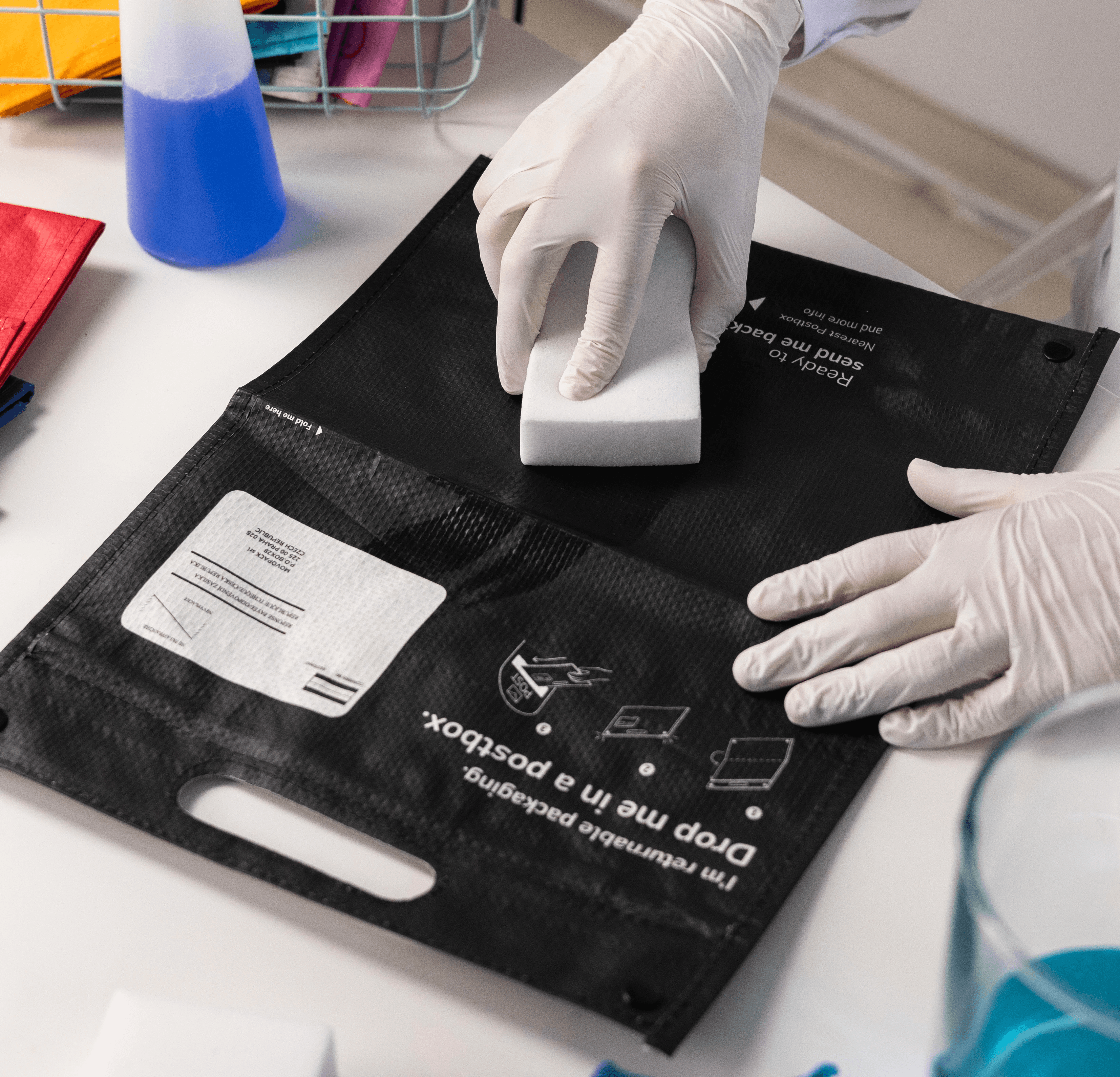 Returned shopping bags are collected in store using the Movopack's return logistics bag.