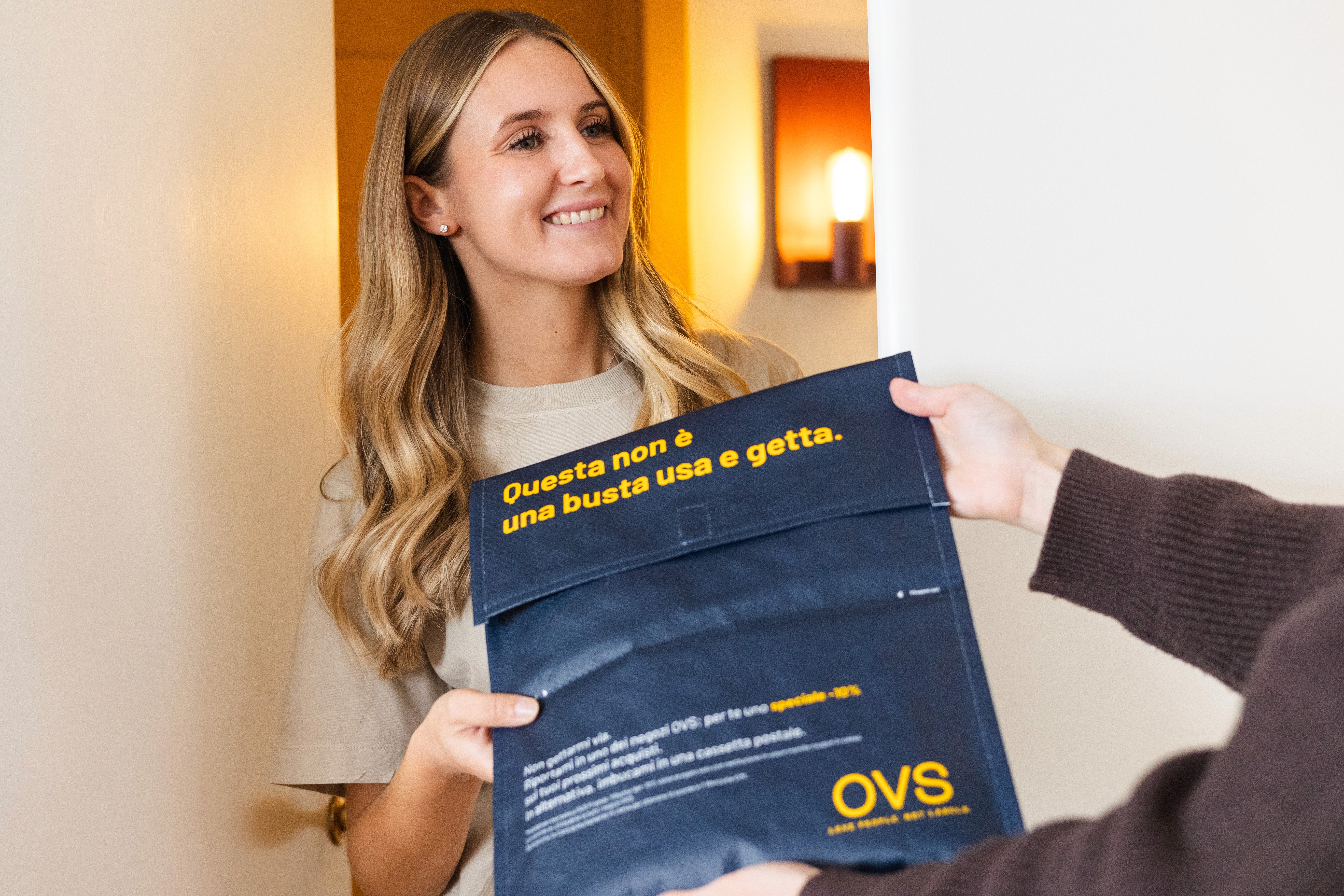 Customers can return the packaging in two ways: drop it in any postbox, or bring it back to any OVS store in Italy. And when they return it in-store as OVS Friends members, they unlock 10% off their next purchase.